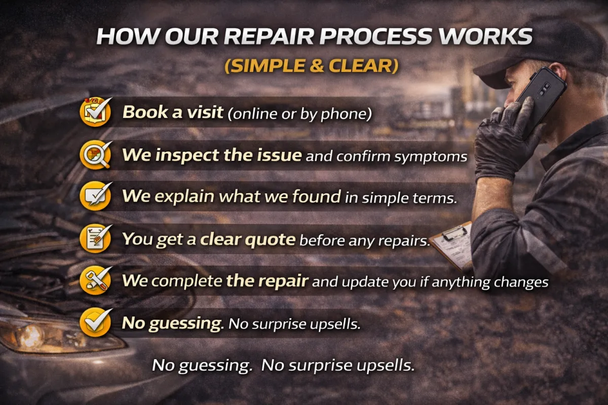 If it’s solid, you can often drive short-term, but you should book diagnostics soon. If it’s flashing, stop driving and call us.